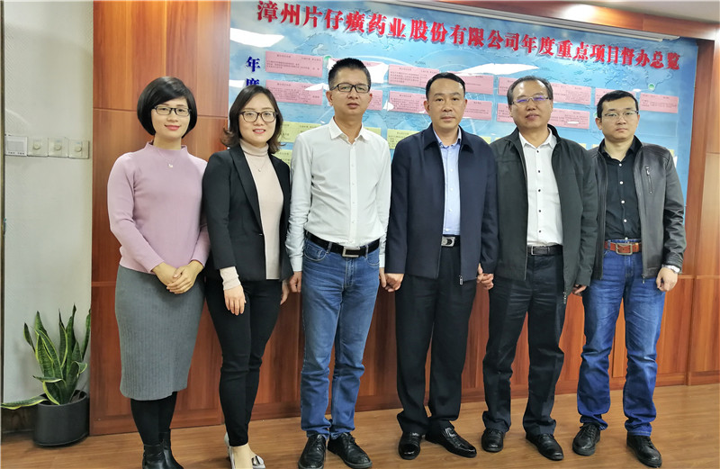 图为工作组与片仔癀董事长刘建顺(右三)合影