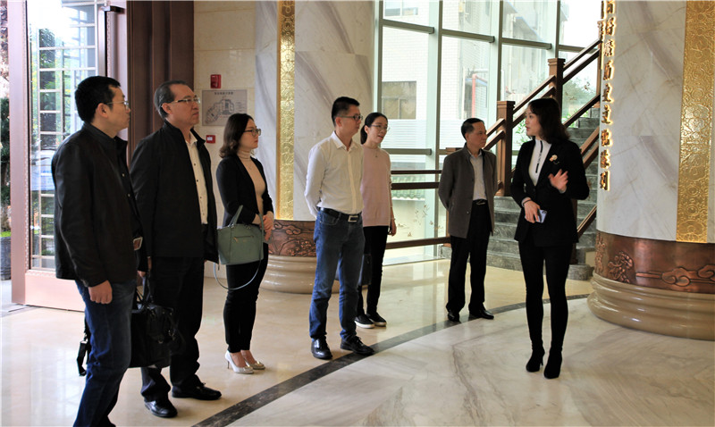 图为工作组与新佳美董事长郭佳(左三)等人合影